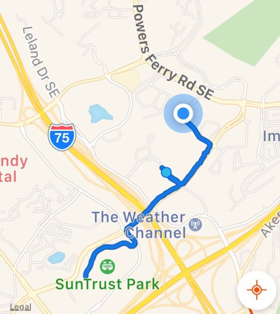 Here is a snapshot of the Strava map when we were halfway through. At the end of the race we looped back and INTO Suntrust Park to run around the outskirts of the field.
