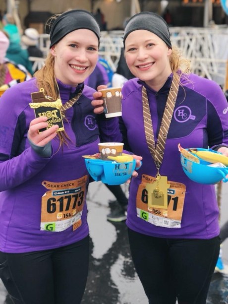 I can’t finish this post without mentioning that this isn’t our first Hot Chocolate race. Back in 2017 Carol Anne, Scott and I signed up for the Hot Chocolate 5k… but I never made it to the start line. Instead, a complication of my chronic illness (Addison’s Disease) landed me in Adrenal Crisis and in the Emergency Dept at the hospital only 2 nights before the race. Adrenal Crisis is life-threatening, and I was far too sick to get out of bed, much less walk or run. Josh, being one of the best brothers in the entire world, took my bib and ran in my place with Carol Anne. He wasn’t even really into running at the time, but he didn’t want her to run alone or miss out. Few things have ever made my big sister heart so proud as tracking the two of them on the live course map. I swore I’d come back and finish the race the next year… and not only the 5k, but the 15k. This race had become my white whale. The one I had to conquer. Come rain, frost, 36 degree weather, puddles, and numb fingers…