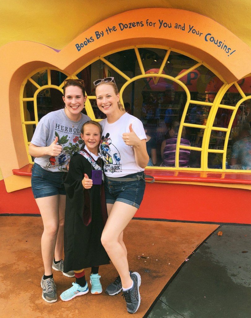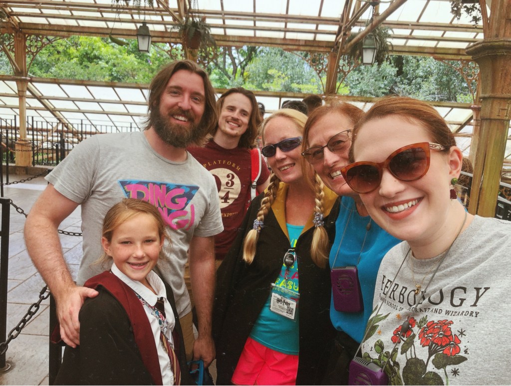 In June 2021 we took a big ol’ fashioned family vacay to Universal Studios for Dana’s 40th birthday!We are Kings of the (theme park) Bus! [<–This is a Tim Tracker reference, and if ya know, ya know.]Rainy weather can’t dampen our spirits. Did you know that Universal had their own Purple Wall just like Disney?“Books by the dozens for you and your cousins!”Family photo taken at Jurassic Park… um, I mean Universal. You know the one. Check out a one second video of our trip below.