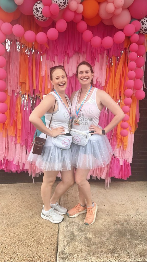 This year for our outfit we wore tanks that said “Diamonds in a Rhinestone World” paired with glitter tutus.